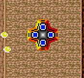 PQ-503s appear as plus-shaped ground structures with four cores. They're only vulnerable when their cores glow up, shooting bullets in four directions.