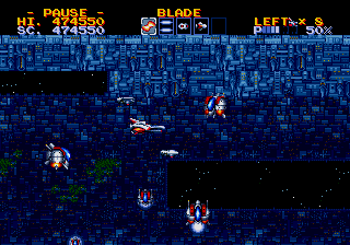 This stage takes place on a derelict space colony which orbits planet Aquaria. The stage is straightforward but features lots of tough enemies, some of which come from the background. There are also many floating enemies as well as enemies capable of multiplying themselves.